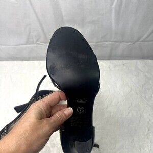 Fioni Black Open Toe High Heels with Faux Flowers Size 7