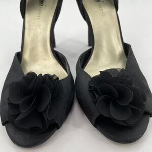 Fioni NIght Black Silky Fabric d'Orsay Bow Vamp Peep Toe Evening Heels 10
