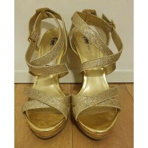 Fioni Night 4" Gold Glitter Heels Strappy Adjustable Ankle Strap US Size 7.5. Condition is "Pre-owned". Shipped with USPS Priority Mail.