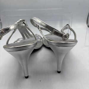 Fioni Night Size 11 Silver T Strap Open Toe Heels Formal wedding