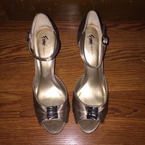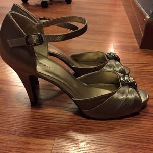 This satin peeptoe heel is perfect for any dressy occasion! it's unique color will make you shine and your pedicure! The gem in the center will add extra sparkle!