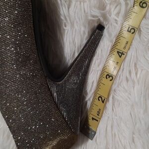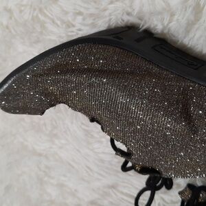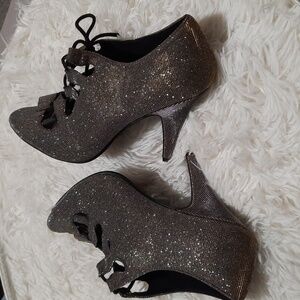 Fioni Night Iridescent Color Sparkly Heels Gold & silver Lace up Peeptoe Side dent on left heel (see pic) Good condition