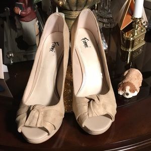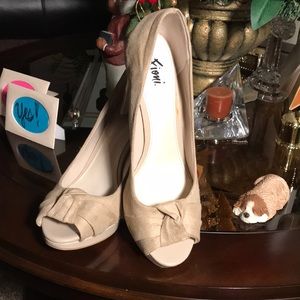 Fioni Tan Heels Peep Toe Bow Shoe Pump Size 9
