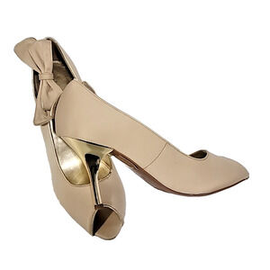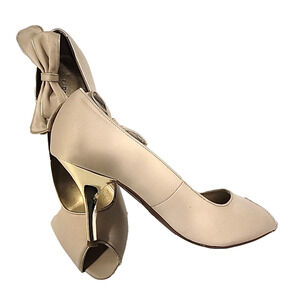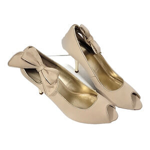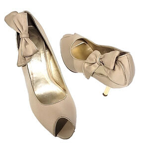 Fioni Yelp Side Bow Open Toe Gold Heel Pumps Size 10 M0