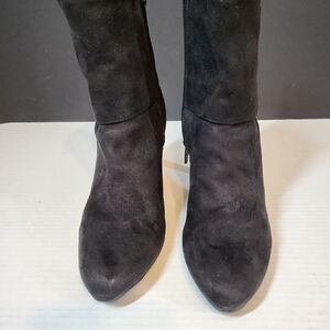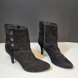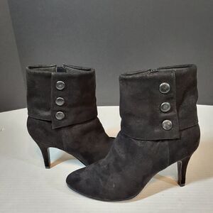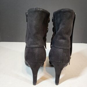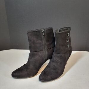 Fioni black ankle boots. Size 7. Fabric uppers with 4" heels. Zips up on the side. Light & normal wear.