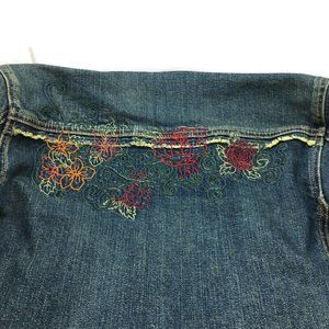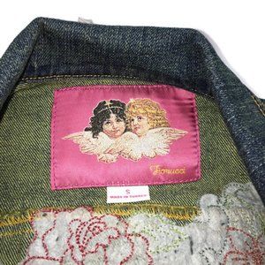 Fionucci Jean Jacket with embroidered detailing. Small. Great condition. Measurements shown in listing photos.