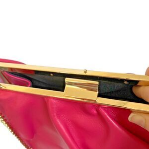 Bold pink ruffle chain purse perfect for Y2K, coquette, and glam night-out looks.