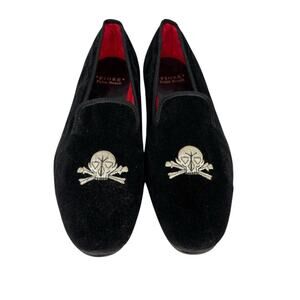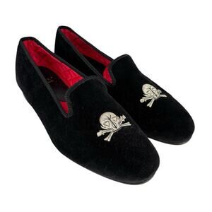 Fiore Palm Beach Skull Moccasins Black Velvet Shoes Hand Made England Men's 10.5