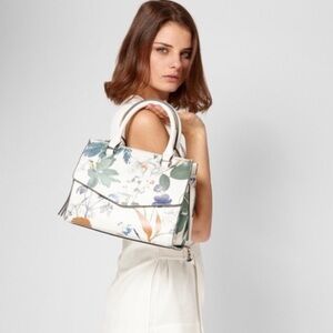 Chic and practical, this Fiorelli Mia Botanical Print Grab Bag is a must-have for floral lovers. Features a soft white base with elegant gold and green botanical print, structured design, and silver-tone hardware.