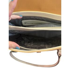Fiorelli Wheat & Brown Over Shoulder Snap Closure White Handles Leather Bag