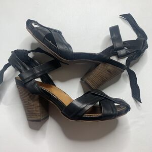 Fiorentini Baker Black Leather Strappy Heeled Sandals