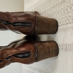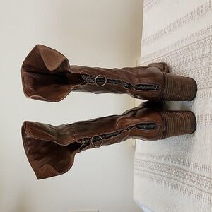 Fiorentini + Baker Brown Leather Chunky Heel Calf Height Boots Women's 36