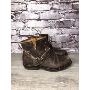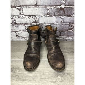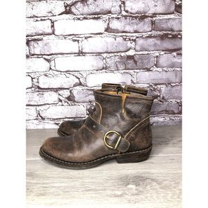 Selling Fiorentini + Baker Brown Leather Moto Biker Side Zipper Buckle Strap Ankle Boots Women’s sz 37EU/6.5M US