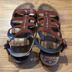 Fiorentini + Baker EU 38 or US 7.5 gladiator sandals cognac brown leather with silver studs, lightly worn- in great pre owned condition