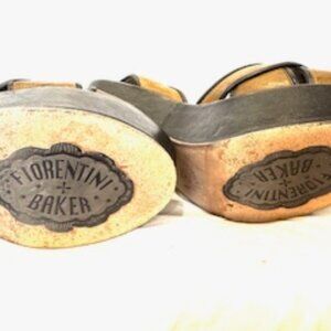 Beautiful craftsmanship and leather from Fiorentini and Baker. Made in Italy, made to last. Color is a dark beige with black trim. Strap wraps once around ankle.
