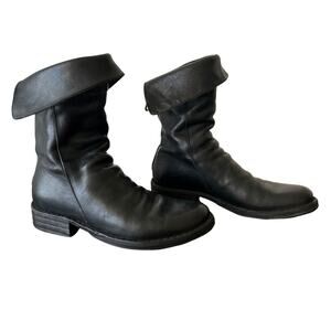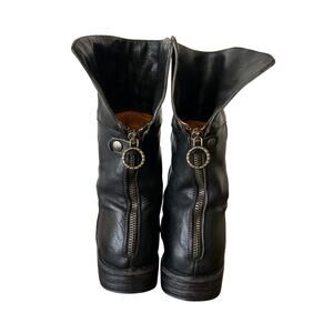 Fiorentini + Baker black Italian leather mid-calf boots with back zips + ring pulls.