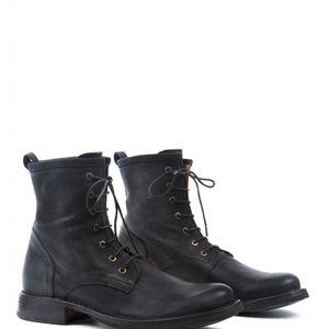 Fiorentini Baker Men Black Distressed Leather Lace Up Boots Italy Size US 9