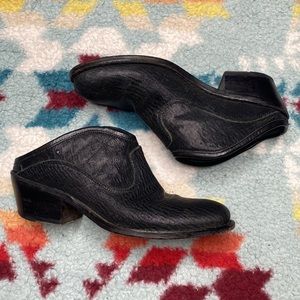 Pre owned Fiorentini & baker black textured leather open heel mules, size 38.5