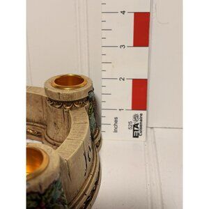 This is a Fioretti Joy, Faith, Love, Hope Advent Wreath Candle Holder. It is a Christmas decoration used to count down the four Sundays leading up to Christmas by lighting a candle each week, with each week representing spiritual themes.