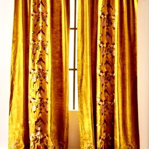Fiori Velvet Embroidered Curtains Anthropologie 2 Panels 84” x50”