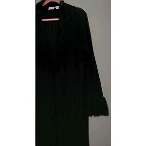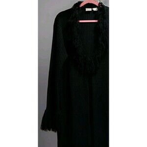 Fiorlini International Black Fringe Long Cardigan Duster Witchy Goth Y2K Vtg Lg
