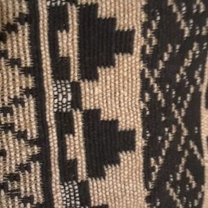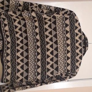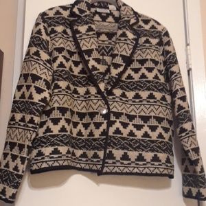 100% Cotton Black & White Aztec type print on Material large lapel with one button front closure. Heavy material Dry Clean Only.