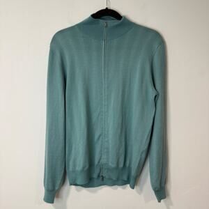 Fioroni Men's Full Zip Sweater Italian Cashmere Silk Wool Blend Blue Aqua 50 Med
