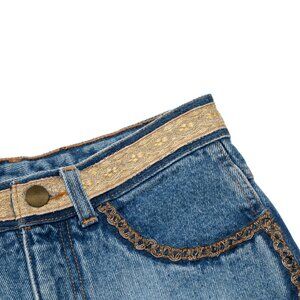 Fiorucci (Italy) 80s, Ring-Spun Indigo, Jacquard Braid, Gold Lace Overlay