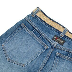 Fiorucci (Italy) 80s, Ring-Spun Indigo, Jacquard Braid, Gold Lace Overlay