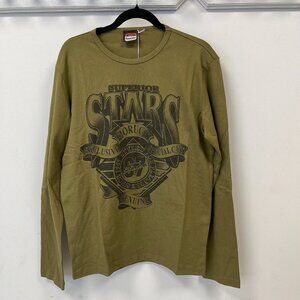 Fiorucci Mens Long Sleeve Superior Stars Graphic T-Shirt, Large -Army Green-NWT