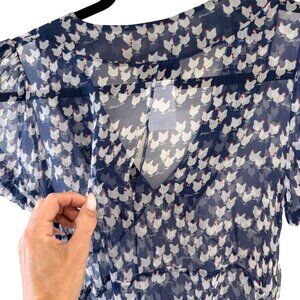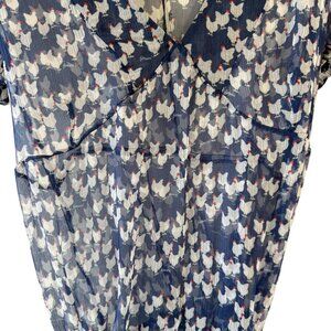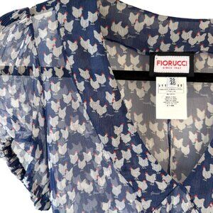 Fiorucci Novelty Chicken Print Sheer Silk Dress Puff Sleeves Tiered Size 8 READ