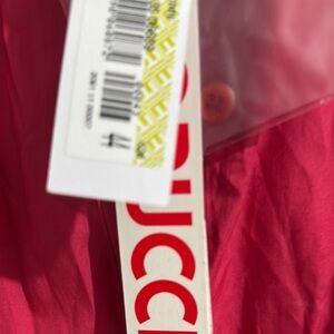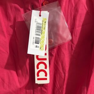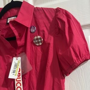 This vibrant red jumpsuit from Fiorucci features a collared neckline and short sleeves with a slight puff, offering a stylish and comfortable fit. The defined waistline enhances the silhouette, making it a perfect choice for casual outings.