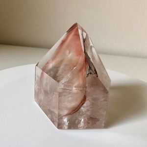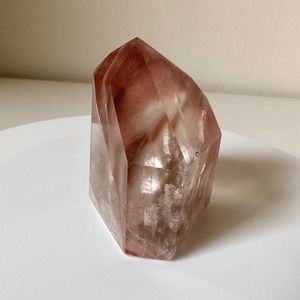 Stunning Red Amphibole Quartz Crystal Point. This piece has gorgeous peachy-red fibrous inclusions.