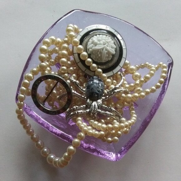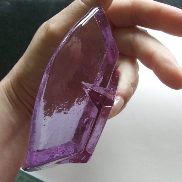 Fire And Light Recycled Neodymium Alexandrite Glass Lavender Amethyst Trinket cache Dish. Gorgeous, beautiful, magical quality piece of fire and light trinket cache glass dish. Ruler in pictures above to show what was measured: ~4.25" from diagonal corner to diagonal corner , ~ 1" tall. No chips or cracks, there are air bubbles ( see last pictures for a close up the air bubbles to expect) which is consistent with pieces from fire and light because of the high temps they used to make their gorgeous glass. Sadly the company closed their doors in 2019 so limited pieces available on the secondary market. I always wanted to do a dinner party with their pieces but never got around to buying more before they closed. Pictures 14 and 15 were taken under florescent light so you can see the color change to a blue color family . The pictures with jewelry I used to demonstrate how many piece of jewelry could fit inside the dish, so the jewelry will not come with this purchase , however, the jewelry should be available for sale in my closet at some point. If you love Neodymium Alexandrite glass I also have a beautiful Neodymium Alexandrite vase for sale in my closet as well. Questions are always welcome . Thank you for checking out my eclectic closet.