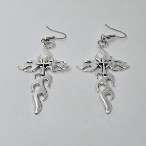 Fire Cross Gothic Large Size Dangling Earrings Jewelry