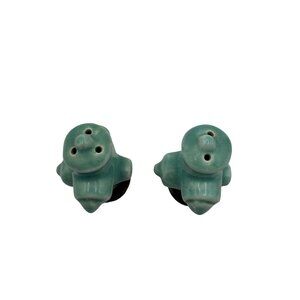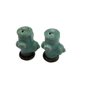 These ceramic salt and pepper shakers feature a unique fire hydrant design, combining functionality with decorative appeal. Ideal for kitchen or dining decor.