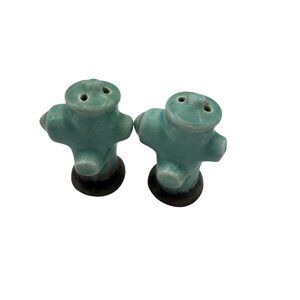 Fire Hydrant Shaped Ceramic Salt & Pepper Shakers Handcrafted Blue & Black