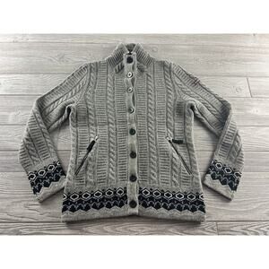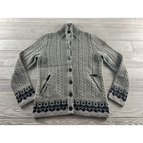Fire & Ice Cable Knit Cardigan Sweater Button Up Nordic Mock Neck Women's Sz M/L