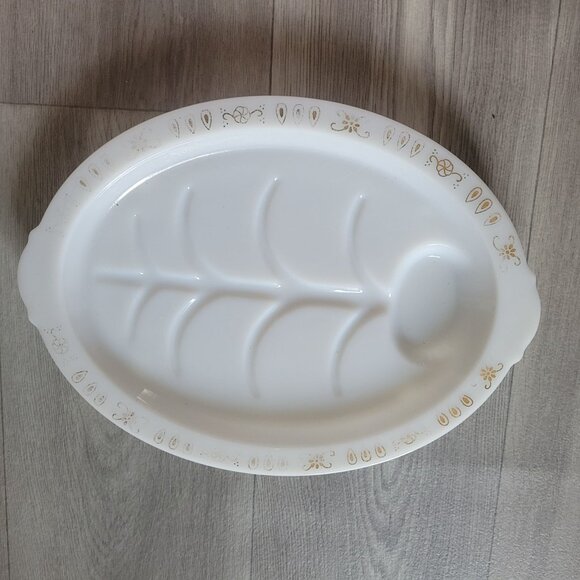 Fire King Anchor Hocking Milk Glass Fish Platter With Golden Accents