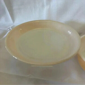 Peach Fire King lusterware shallow baking dish and 1 1/2 qt casserole dish