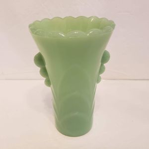 Fire King Jadeite Deco Vase 5 1/4" Scalloped Rim Vintage MCM Mid Century