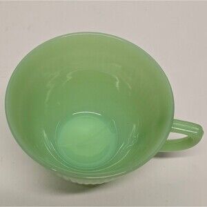 Jadeite Fire King Oven Ware Tea Cup & Saucer Set Jane Ray Pattern U.S.A. Vintage.