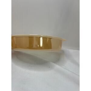 The Fire King Peach Luster 8" Round Cake Pan/Casserole with handles is a vintage piece of American-made glassware from the mid-20th century. This decorative casserole features a round shape with a glossy peach finish, making it perfect for all occasions. The vintage style and original production of this Fire-King product add a touch of retro charm to your kitchen, suitable for oven baking and hand wash only care. The presence of the handles further enhances the functionality and style of this mid-century modern piece.