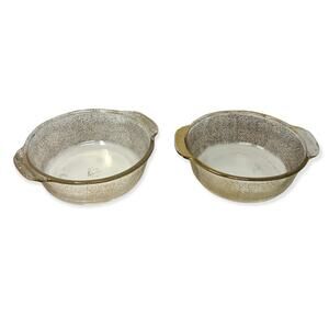 Fire King Vintage Gold Fleck Glass 2 Quart Casserole Baking Dishes Made in USA