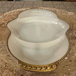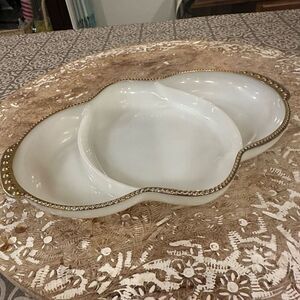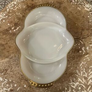 Fire King Vintage Milk Glass Three Section serving appetizer Platter gold trim
