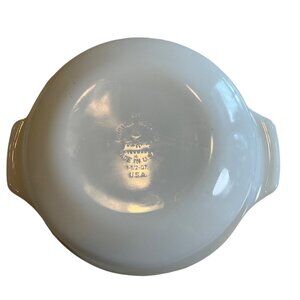 This Fire King white 1 1/2Qt Round Casserole Dish without Lid, made in the USA, offers an elegant touch to your kitchenware, perfect for baking and serving.