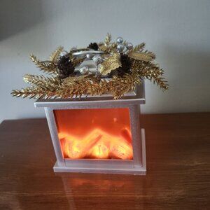 Fire Light Lantern SILVER with Pine Wreath - Fireplace