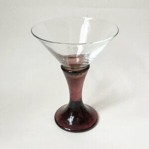 Fire & Light Plum Stem Martini Recycled Glass Cup Hand Poured Barware Signed