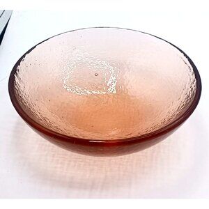 Crafted by Fire and Light, this recycled art glass set radiates warmth with its copper-orange bowl and matching pink-toned plate. The textured design reflects light beautifully, creating a unique dining experience. Each set includes a 5" bowl and a 7" plate, blending sustainability with artful elegance.