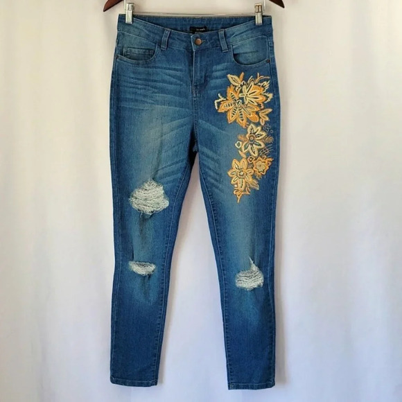 Fire Los Angeles Hi Rise Embroidered Skinny Jeans Size 7